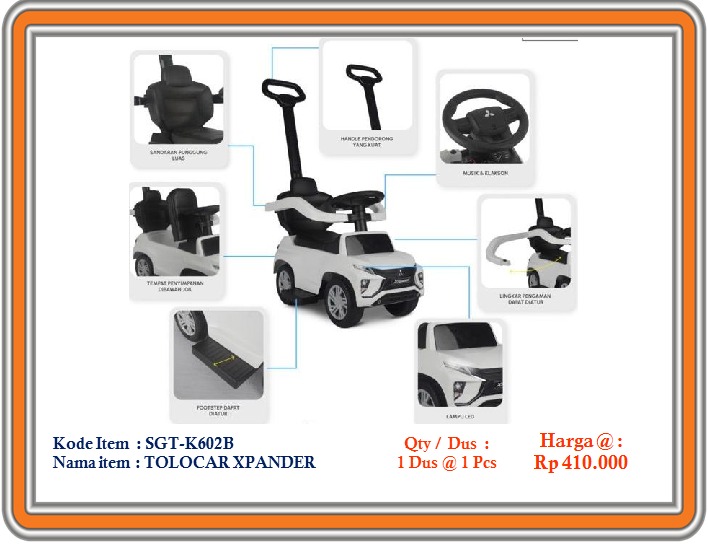 Mainan Tolocar Xpander yang dapat digunakan sebagai kendaraan dorong anak.